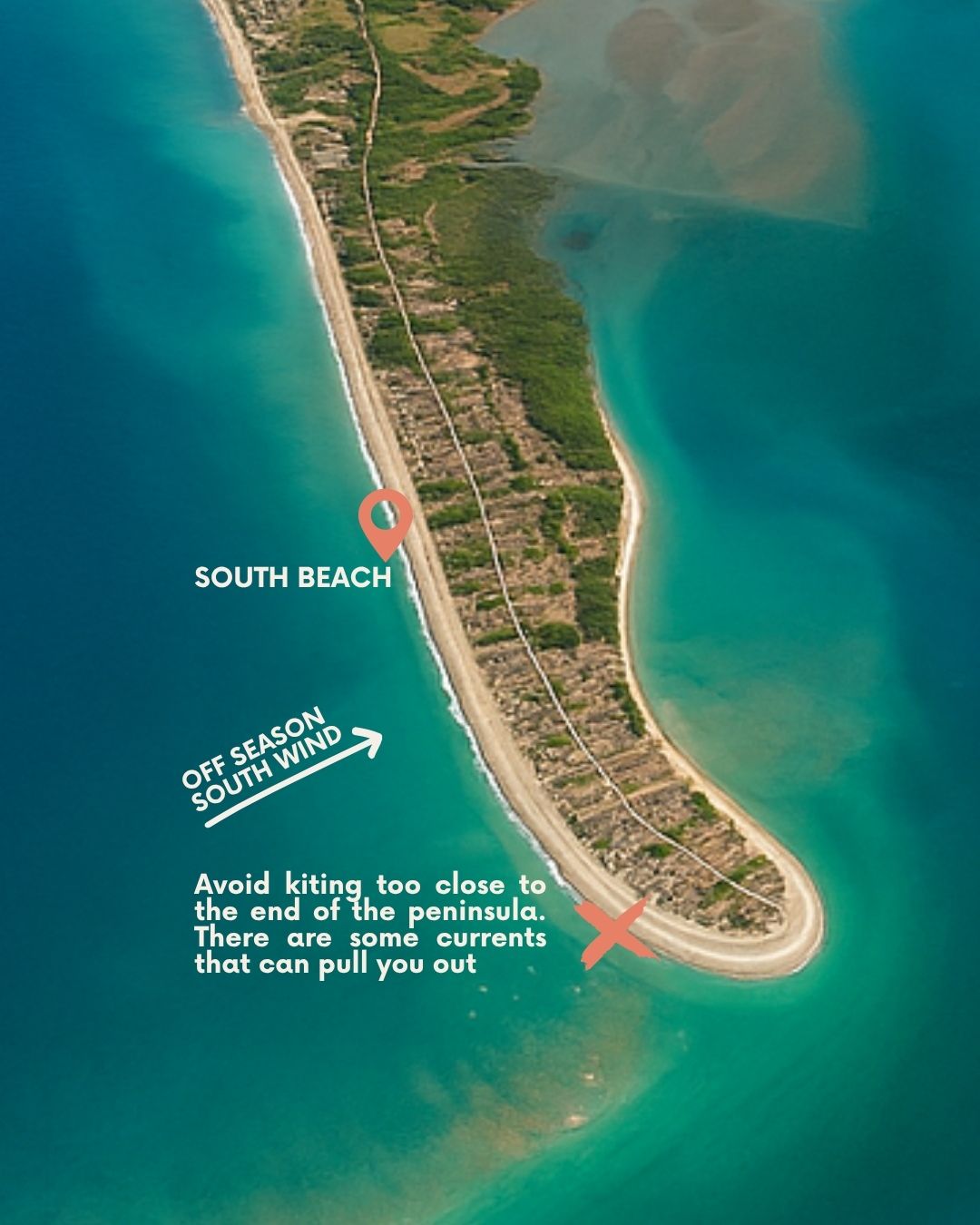 Whether you’re here to learn, progress, or explore, you’ll find steady wind, warm water, and endless space to ride.👇 Discover our favorite kite areas below — complete with local tips, wind directions, and tide insights to help you make the most of every session.